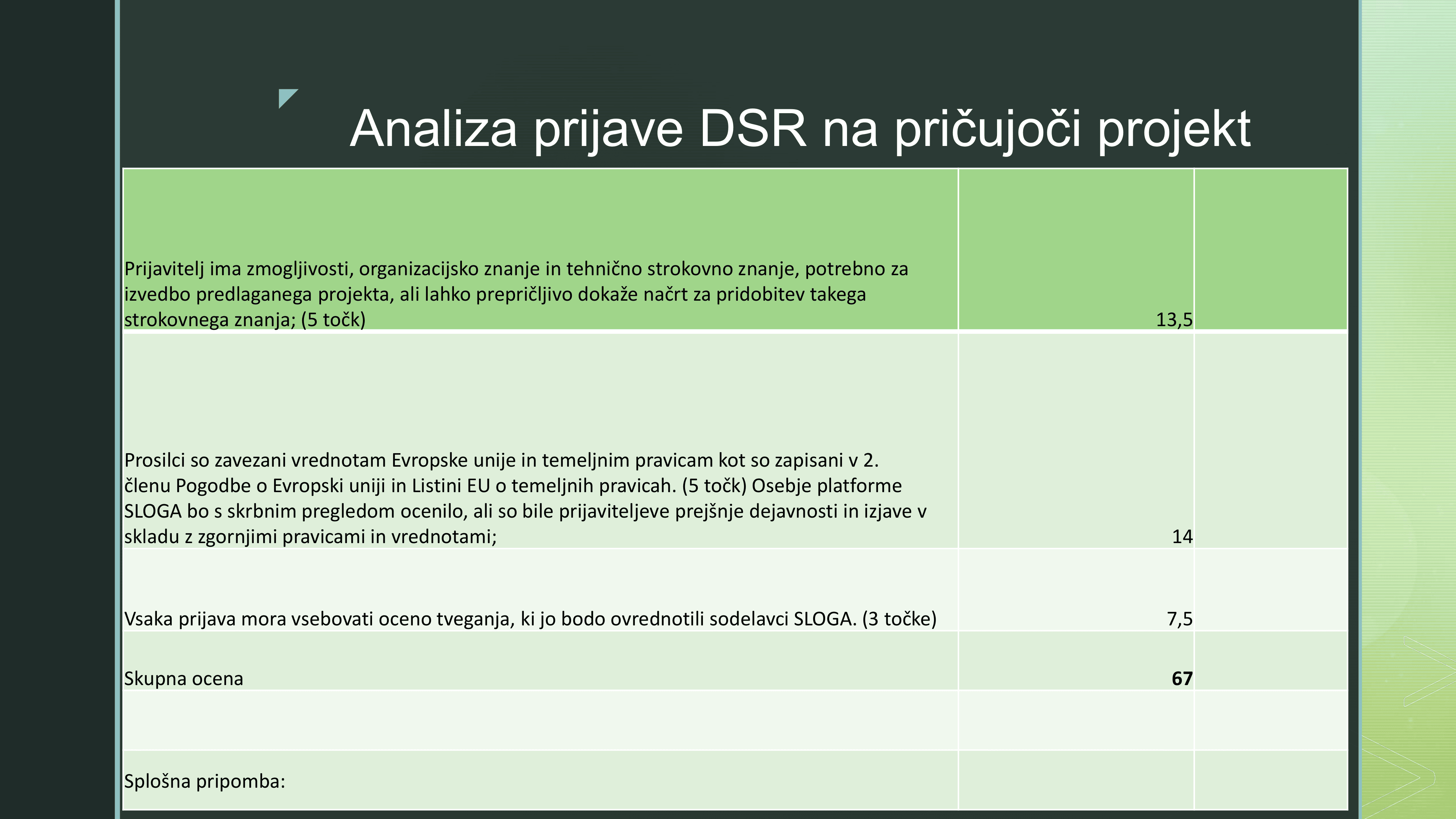 Posebna pozornost je bila namenjena analizi prijave Društva Slovenija Rusija na razpis programa PROTEUS, v okviru katerega je bilo izobraževanje tudi izvedeno. Udeleženci so skupaj ocenili prednosti in slabosti prijave ter se seznanili z najboljšimi praksami za prihodnje razpise.