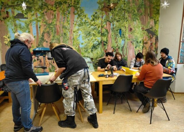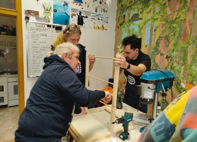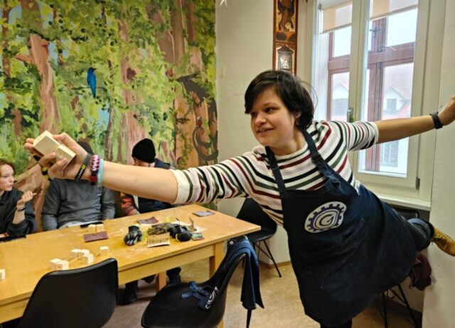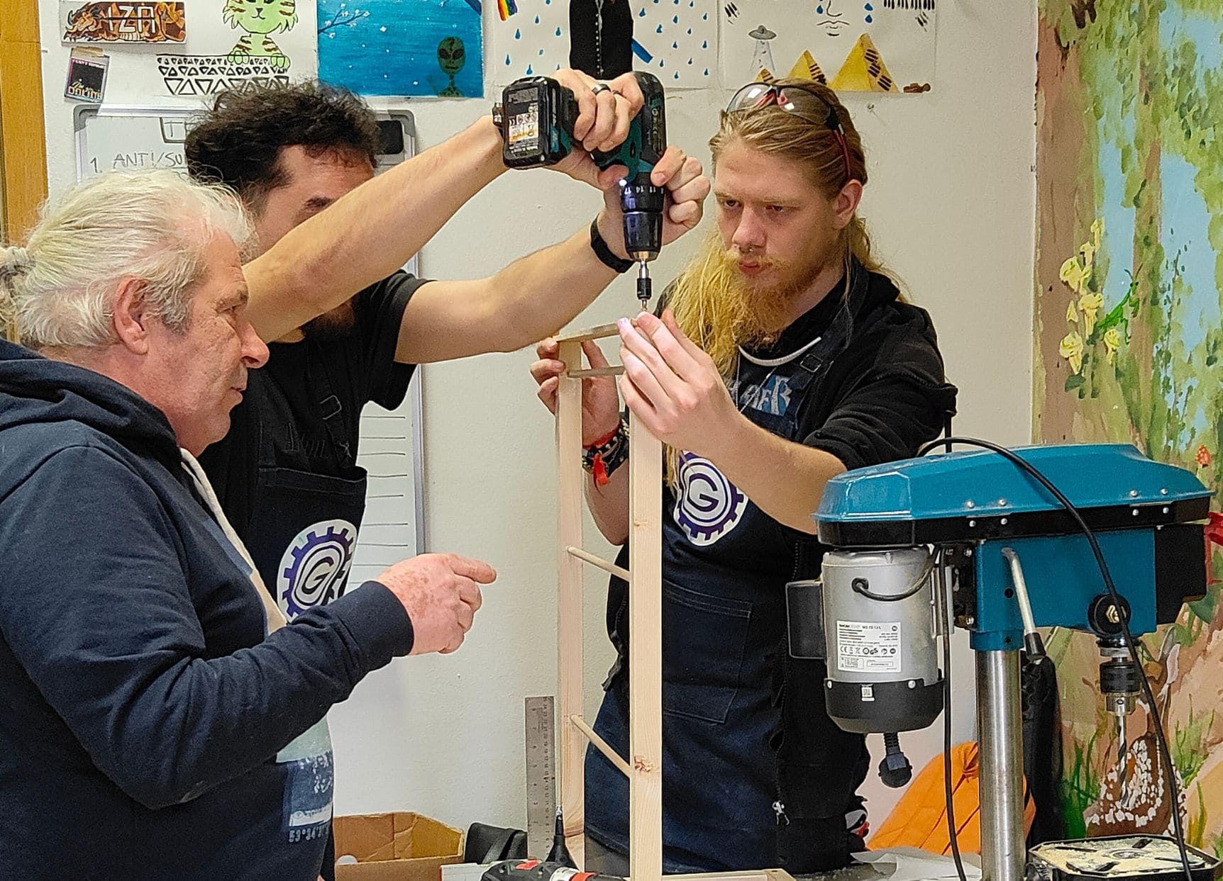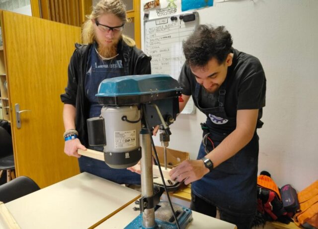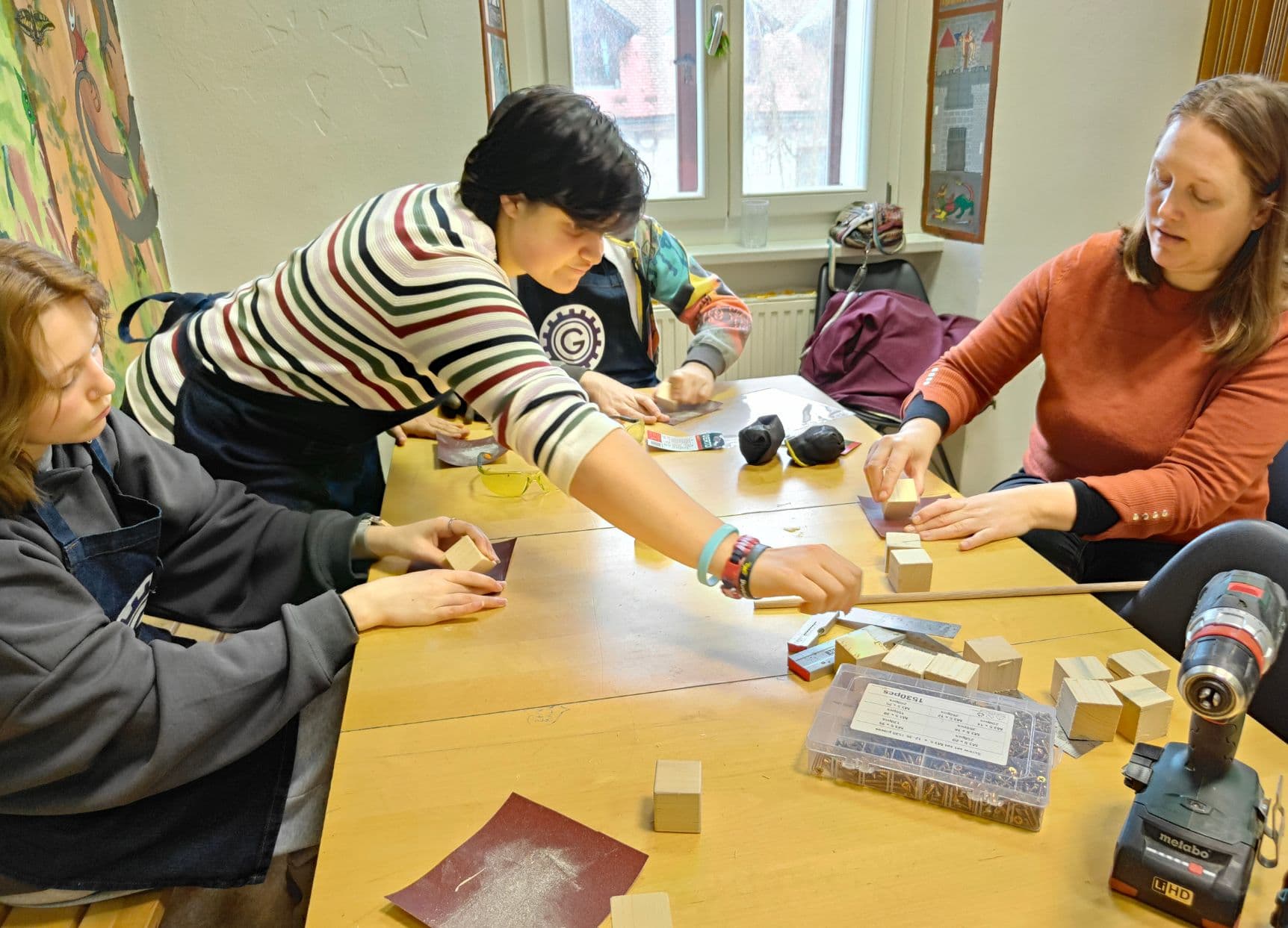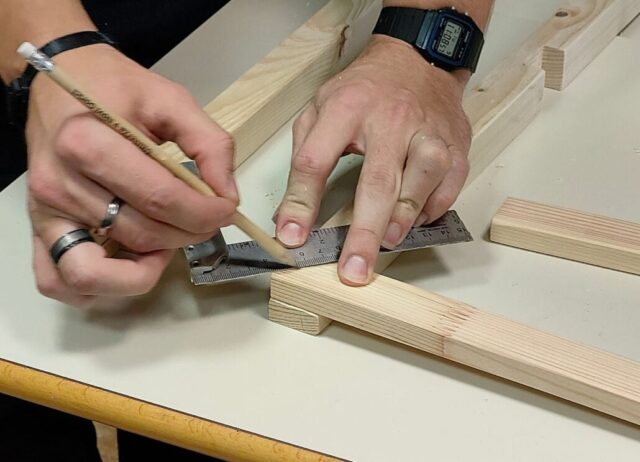 Sledi izdelava kvadratnih lesenih metnih žogic, kjer so se udeleženci naučili postopkov spenjanja materialov in priprave igralnih pripomočkov. Celoten proces učenja je temeljil na trajnostni uporabi materialov, saj so bili za izdelavo uporabljeni reciklirani in ponovno uporabljeni leseni elementi, kar mladim omogoča razumevanje odgovorne rabe virov.