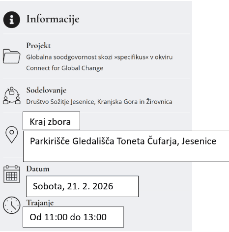 Globalna soodgovornost skozi specifikus je projekt, ki ga v partnerstvu izvajata Društvo Sožitje Jesenice in Inštitut PIPZ v sklopu programa Connect for Global Change (program CFGC). Program CFGC sofinancirata Evropska unija (EU) in Ministrstvo za zunanje in evropske zadeve (MZEZ). Izražena stališča in mnenja pripadajo izključno avtorjem ter ne predstavljajo nujno uradnih stališč EU, MZEZ ali Izvajalske agencije za izobraževanje in kulturo. EU, MZEZ in organ, odgovoren za dodeljevanje sredstev, zanje ne prevzemajo nobene odgovornosti.