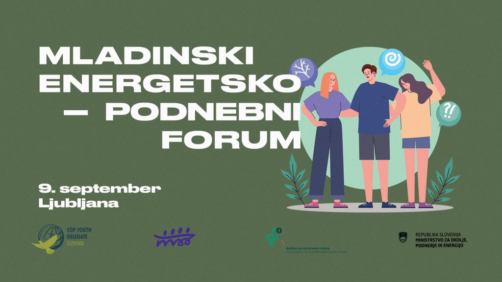 V soorganizaciji Mladinskega sveta Slovenije, mladinskega podnebnega delegata Jana Zupana, okoljske organizacije Focus, ki je članica platforme SLOGA in Ministrstva za okolje, podnebje in energijo bo v torek, 9. septembra v Ljubljani od 15:30 naprej potekal že tretji mladinski energetsko-podnebni forum. Mladi bodo skupaj s strokovnjaki in oblikovalci politik razpravljali o izzivih podnebne krize, prilagajanju podnebnim spremembam ter mednarodnih aspektih odzivanja na podnebne spremembe. Med ključnimi letošnjimi temami je tudi globalna odgovornost in pravičnost ter participacija v oblikovanju političnih odločitev, ki naslavljajo podnebne krize.